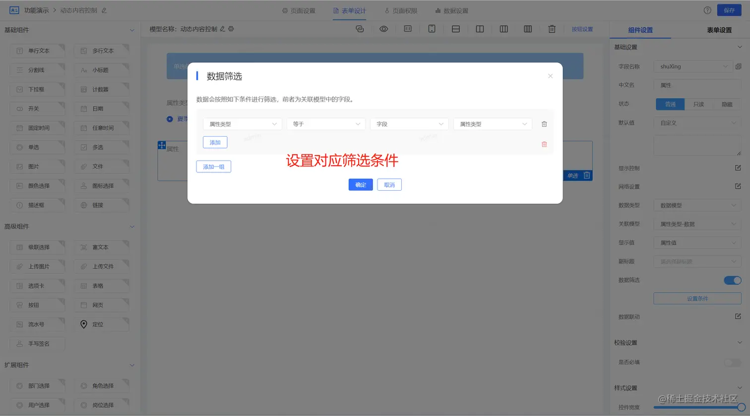 2、配置动态过滤的数据模型,如下图所示: