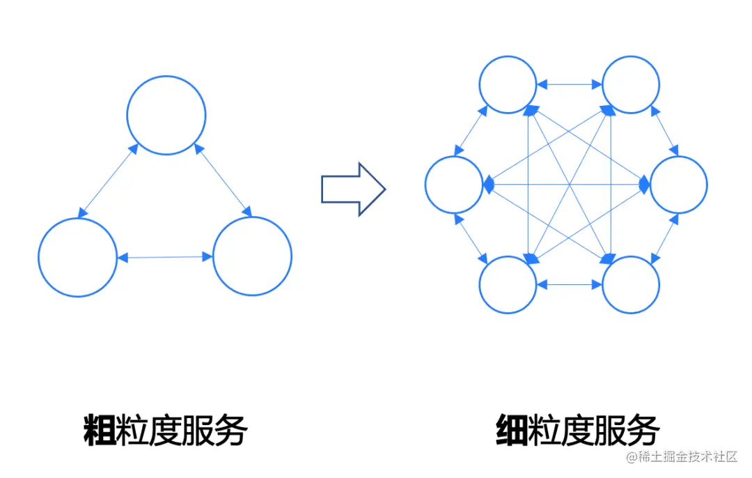 下图可以看出,服务拆分越细,调用关系越复杂。