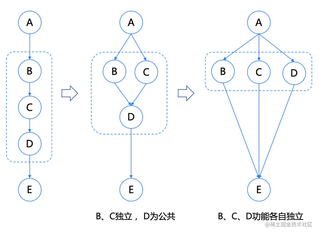 问题: 服务BCD 链路太长(垂直域/小组内)