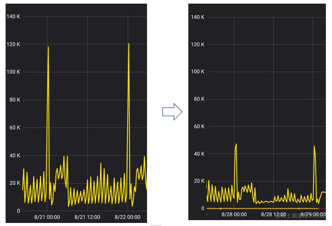 效果:分钟内总的调用量不变,服务端调用量从波动变为平稳。