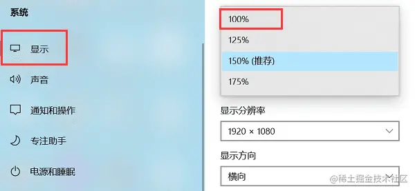 - 在 【缩放和布局】 下拉菜单中,选择 【100%】 选项。