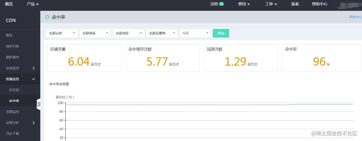 CDN 在静态资源的加速场景中是将静态资源缓存在距离客户端较近的CDN 节点上,然后客户端访问该资源即可通过较短的链路直接从缓存中获取资源,而避免再通过较长的链路回源获取静态资源。因此 CDN的缓存命中率的高低直接影响客户体验,而保证较高的命中率也成为了站长的核心命题。在本文中我们就一起探讨 CDN 缓存命中率的概念、影响因素以及优化策略。