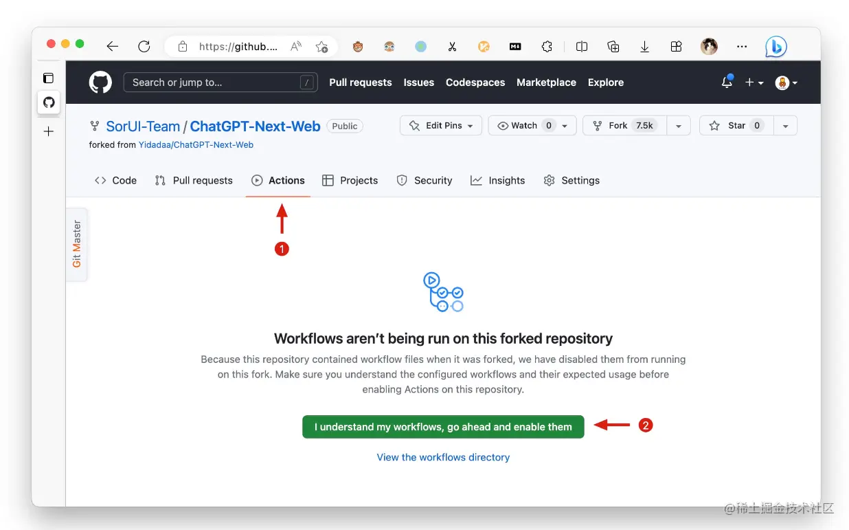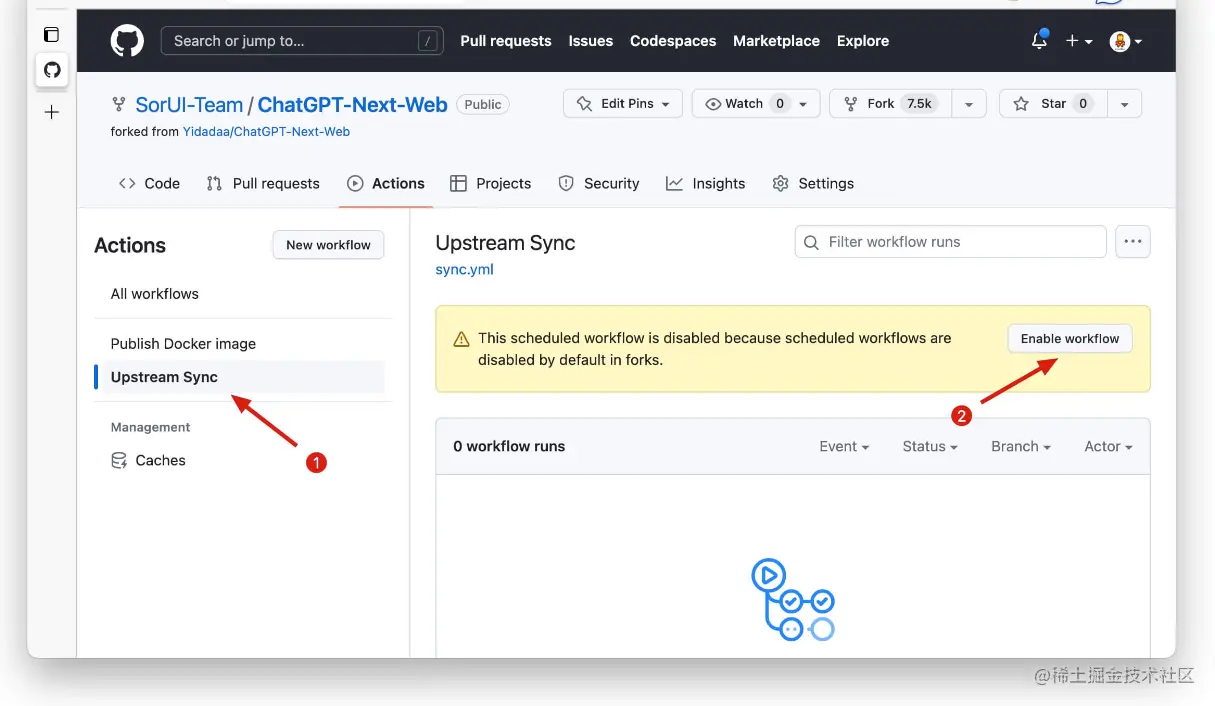 当你 fork 项目之后,由于 Github 的限制,需要手动去你 fork 后的项目的 Actions 页面启用 Workflows,并启用 Upstream Sync Action,启用之后即可开启每小时定时自动更新: