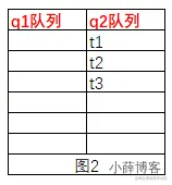 可以这么理解,obj对象上有2个队列,如图1,q1:等待队列,q2:准备获取锁的队列;两个队列都为空。