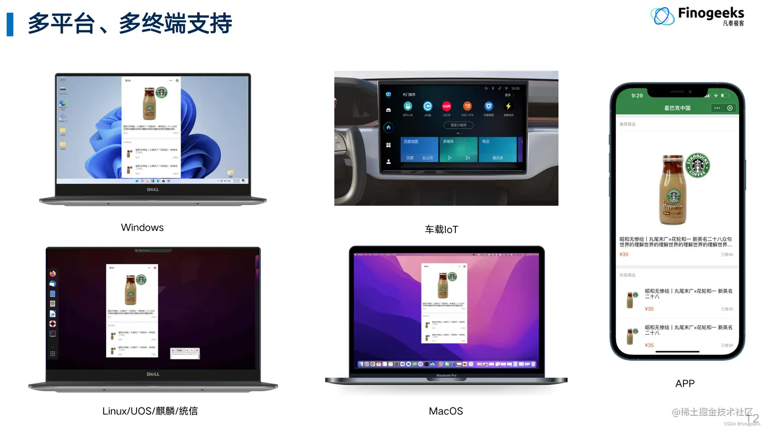 FinClip 支持包括 Linux、Windows、MacOS、麒麟等操作系统。这意味着,PC 端、车载设备、智能电视都能使用小程序了,实现了小程序的“一次开发,到处运行”,同时触达众多流量平台,而不仅仅局限于微信生态。此外 FinClip 也支持微信等其他平台的小程序语法,支持平滑上架,如经过 Uni-App 所编译的微信小程序可以直接被上传至 FinClip 中,并在移动应用中打开使用,为了尽可能为开发者与用户提供良好的体验,FinClip 不仅提供完善的开发、测试、上下架等全生命流程,引入 FinClip SDK 的应用安装包体积仅会增加 2M 左右。