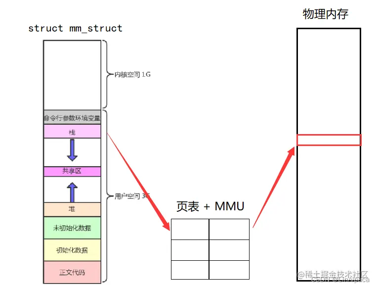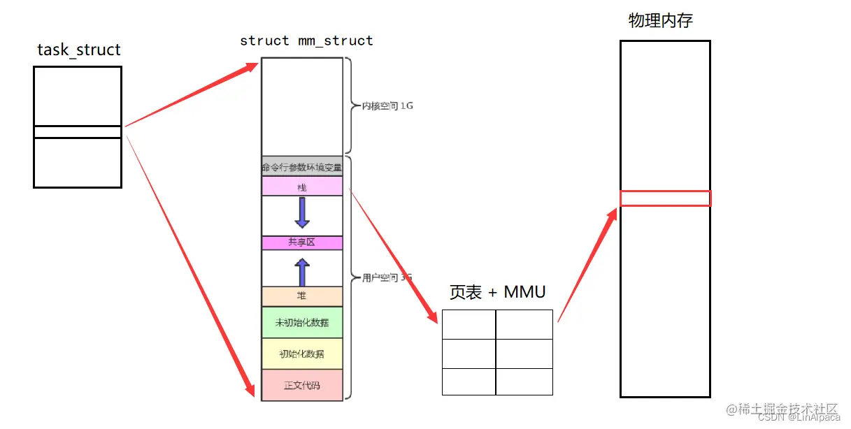 🎃之后 mm_struct 便可以借助页表与MMU(内存管理单元)与物理内存确立映射关系、建立联系。
