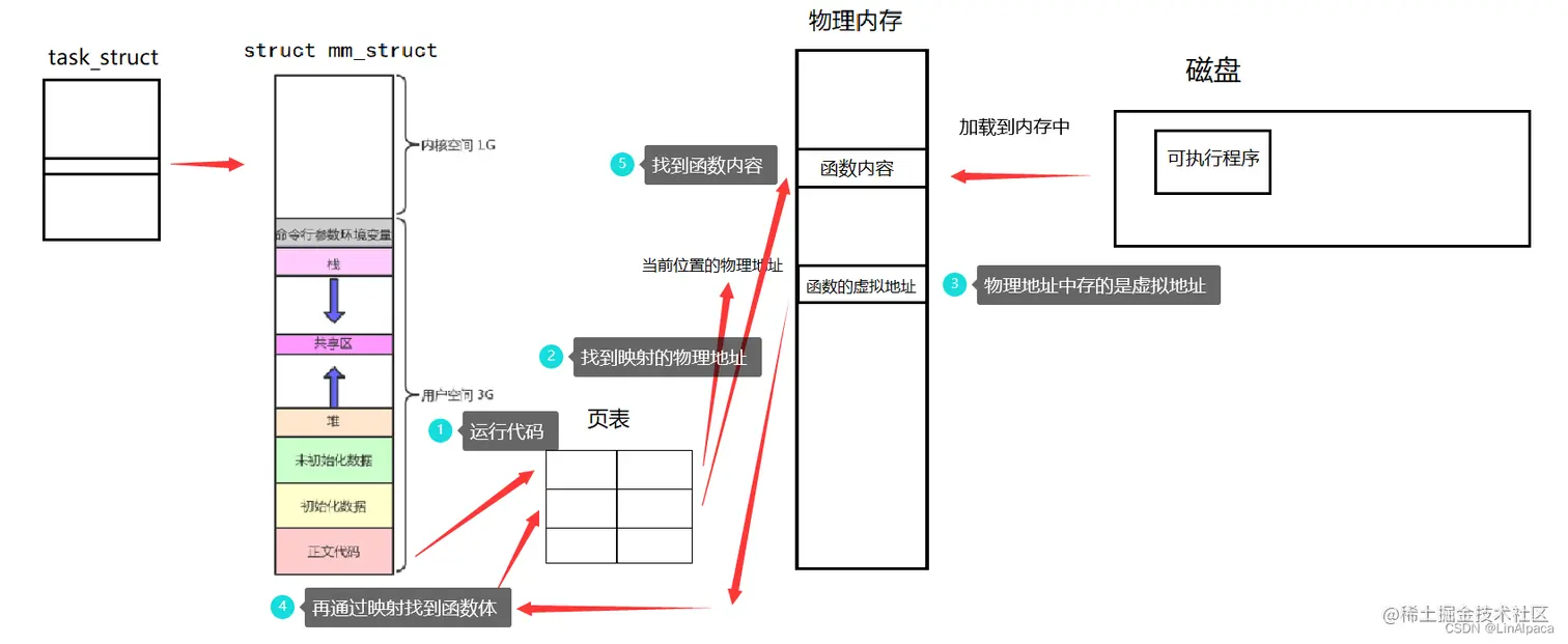 🎃因此在内存中打开文件时,自然就有了对应的物理地址,之后在运行的时候若对函数进行调用,通过映射就会找到函数的虚拟地址(当前物理地址中存的是虚拟地址),再通过映射便可以找到函数体(再通过映射找到存函数体的物理地址)。