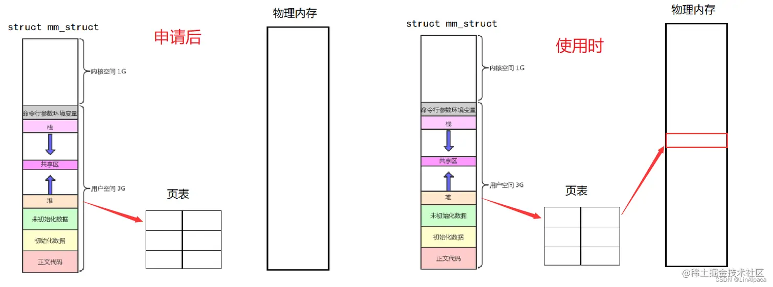 🎃因此动态开辟时值分配虚拟内存,当要使用该空间时再分配物理内存,完善页表之中的映射关系。