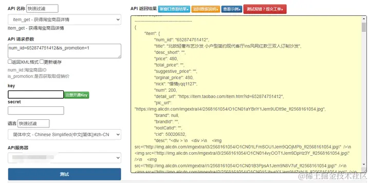 淘宝详情API接口是提供给开发者的一种数据接口,能够快速获取淘宝商品的详细信息,包括商品的标题、描述、价格、库存、评价等等。这个接口为商家和开发者提供了一个非常便利的方式来获取与商品相关的数据,从而实现更精准的营销策略和更高效的开发效率。