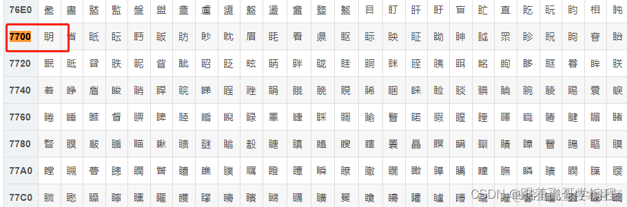 汉字“明” 的7700 的二进制为