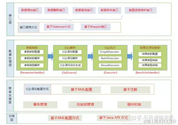 基础支撑层:负责最基础的功能支撑,包括连接管理、事务管理、配置加载和缓存处理,这些都是共用的东西,将他们抽取出来作为最基础的组件。为上层的数据处理层提供最基础的支撑。