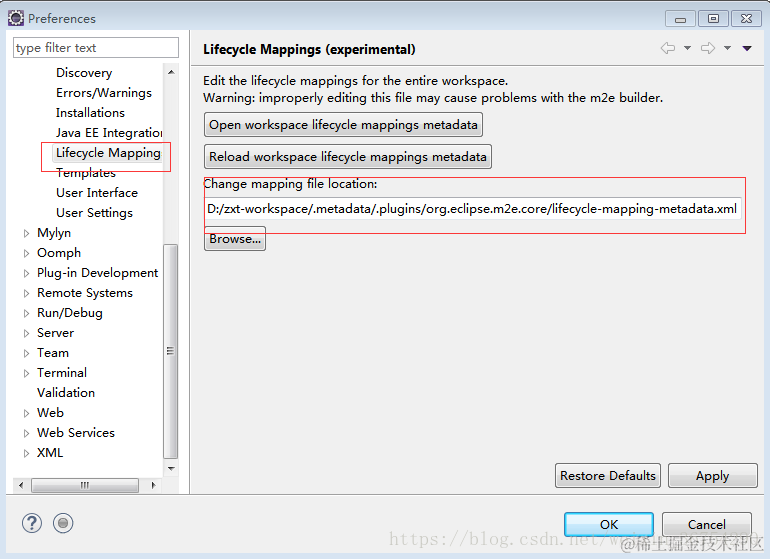 2.再次打开window>Preferences>maven> Lifecycle Mappings