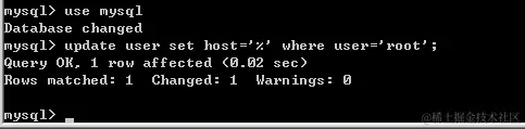update user set host='%' where user='root';