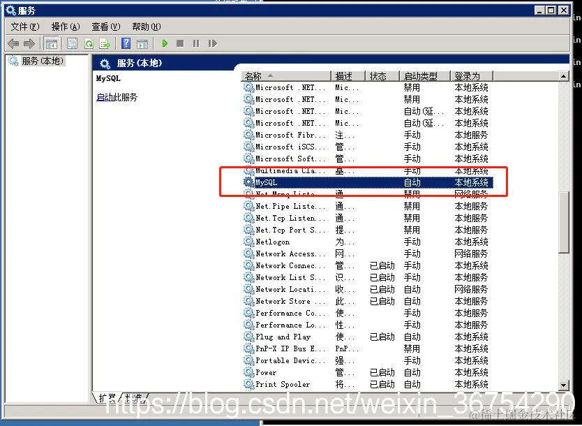 启动MySQL服务: