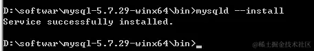 提示Service successfully installed 即为安装成功,并在本地服务列表中可以查看到MySQL服务。