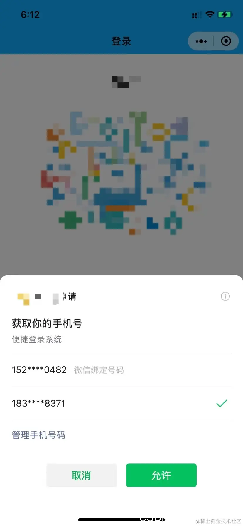 //此处根据入参 e.detail.code 请求后台接口,即可得到用户的手机号