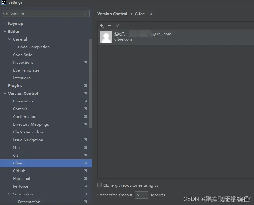 接下来添加你的 Gitee 账户,我这里已经添加过了。其实这一步也可以放在你需要上传项目时那一步做设置也是可以的。