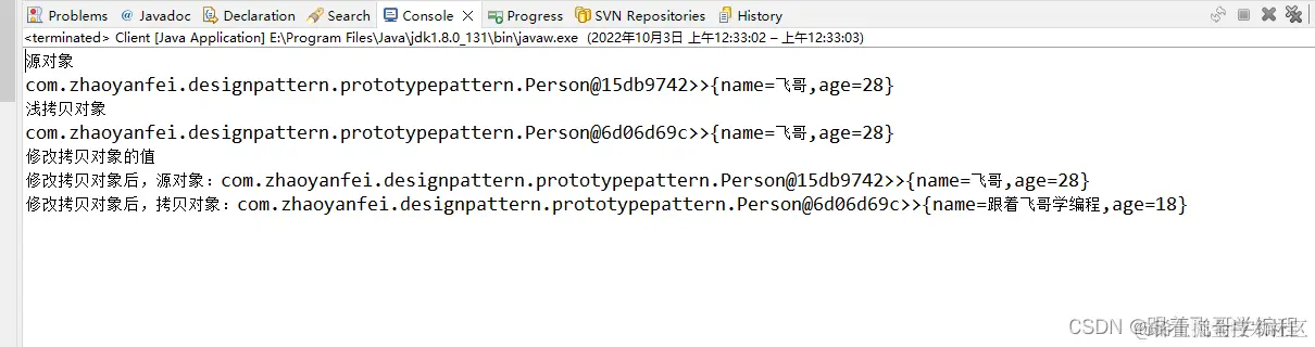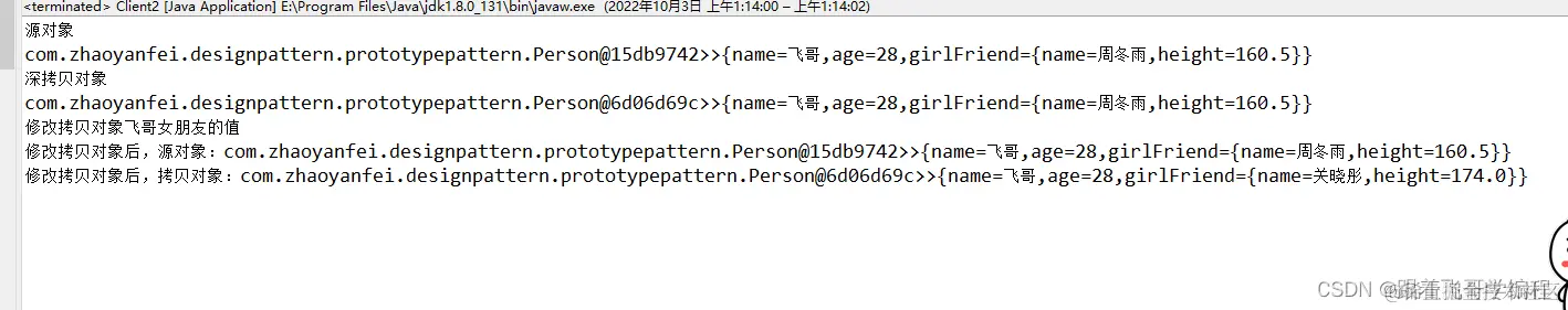 System.out.println("修改拷贝对象后,拷贝对象:"+clonePerson);