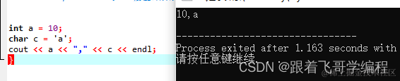 在用 cout 输出变量值时,不必设置以什么格式输出,“<<” 运算符会根据变量的数据类型自动调用相匹配的重载函数,而正确输出。这比C语言中的 printf() 函数用法更简便。