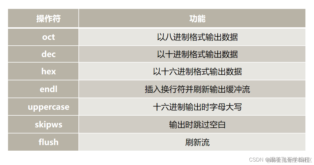 - 标准输入输出流的对象和操作方法都是由 istream 和 ostream 两个类提供的,这两个类继承自ios 基类,它们预定义了标准输入输出流对象,并且提供了多种形式的输入输出功能。