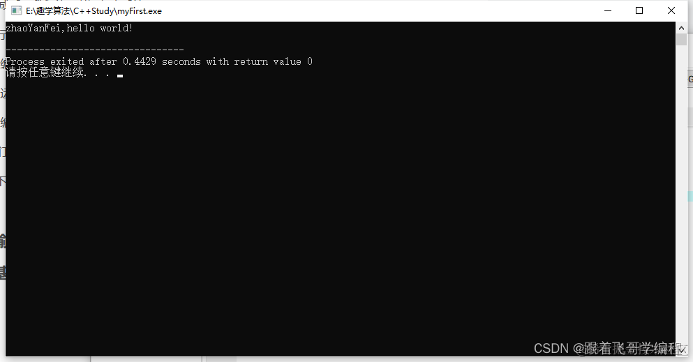 cout<<"zhaoYanFei,hello world!"<<endl;