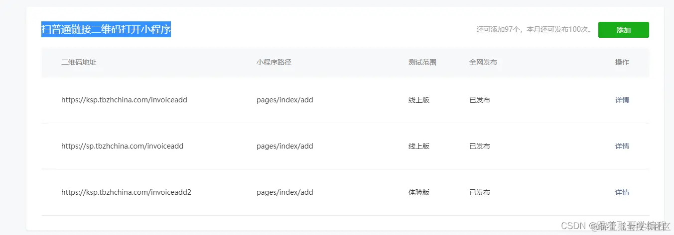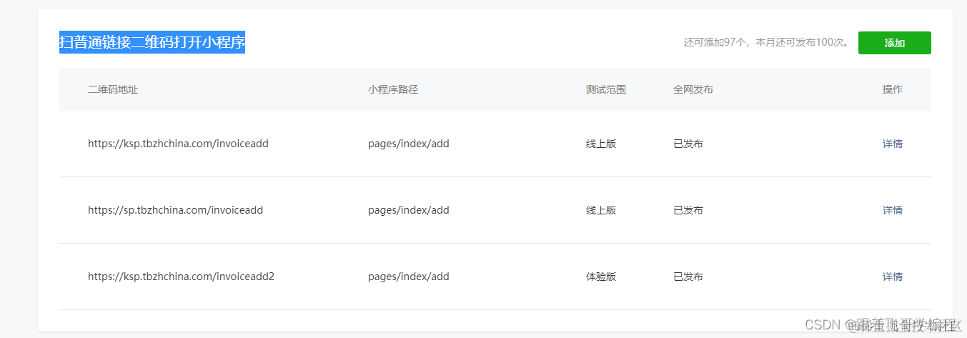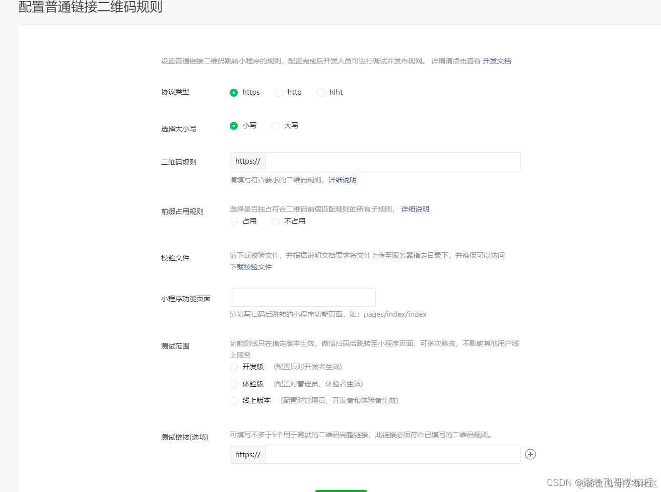 其次登录微信小程序开放平台,设置扫普通链接二维码打开小程序。