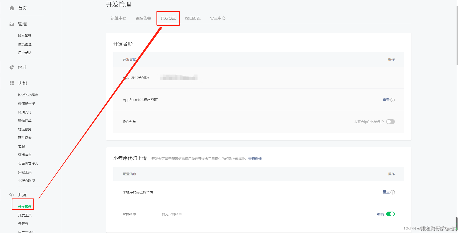 1、登录微信开放平台,找到 开发管理》开发设置》扫普通链接二维码打开小程序。