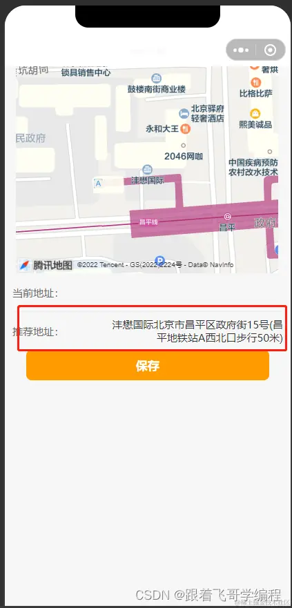 mapSelected:map组件的id, 结合以上方法去实时获取你选择位置的经纬度,根据经纬度即可实现实时选择收货地址的功能。