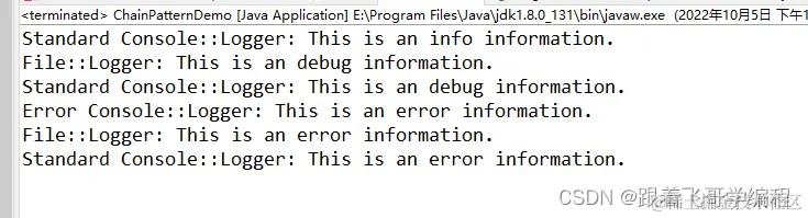 //以此类推,上一个FileLogger 不能处理的传递给ConsoleLogger对象处理