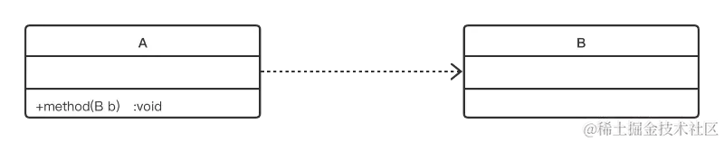 是一种使用的关系,即一个类的实现需要另一个类的协助。
