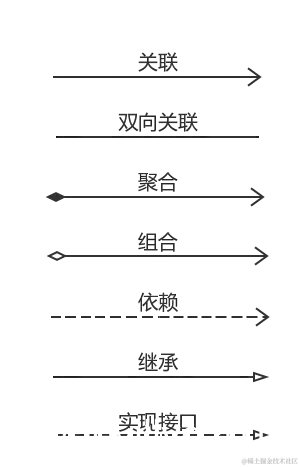 3.5、尾部为空心菱形箭头 (也可没箭头)