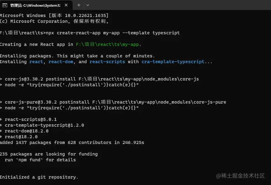 npx create-react-app my-app --template typescript