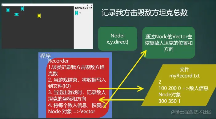 - 记录玩家的总成绩(累积击毁敌方坦克数),存盘退出【io流】