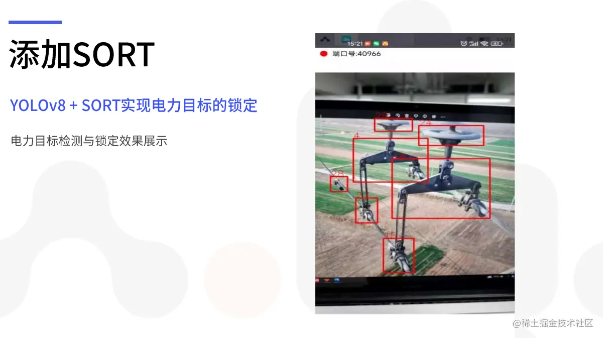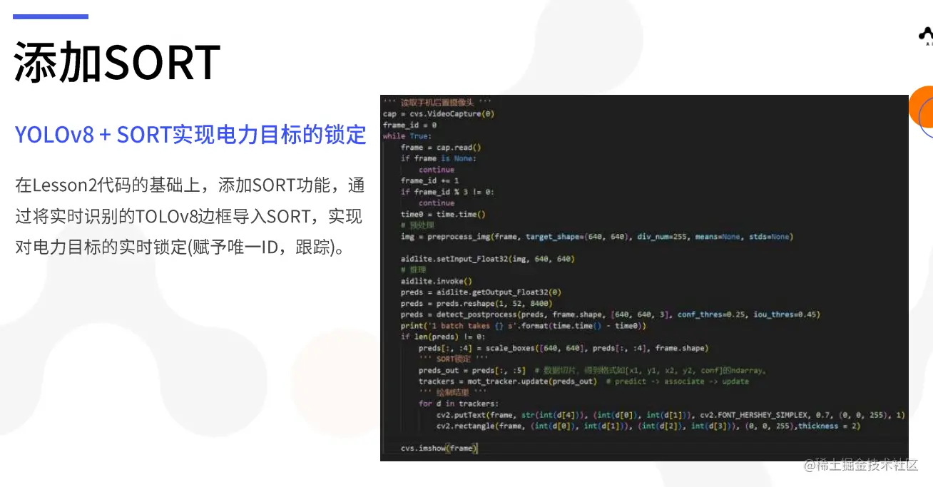 本项目参考Aidlux实战训练营内容,采用YOLOV8和SORT算法实现可见光巡检中的目标锁定。