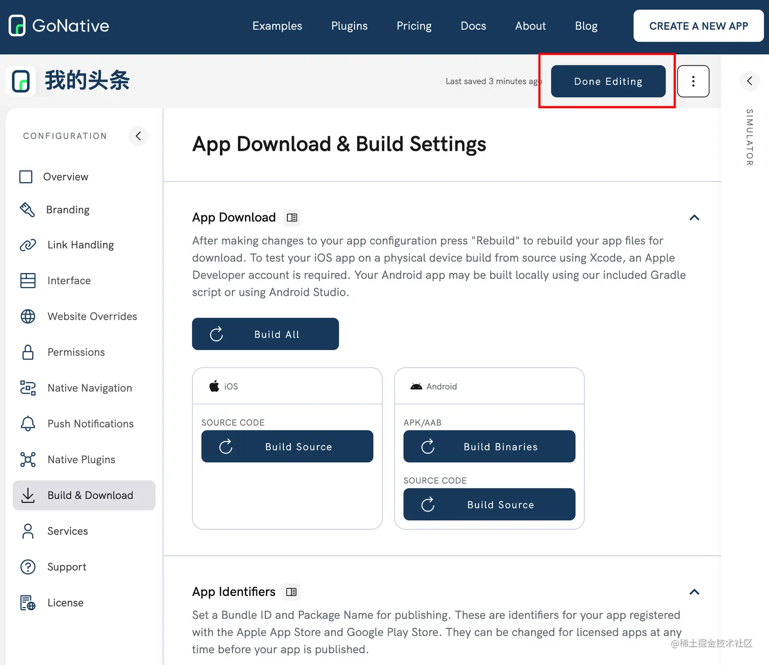 再次确认所有的配置都完成之后,我们点击顶部的「Done Editing」