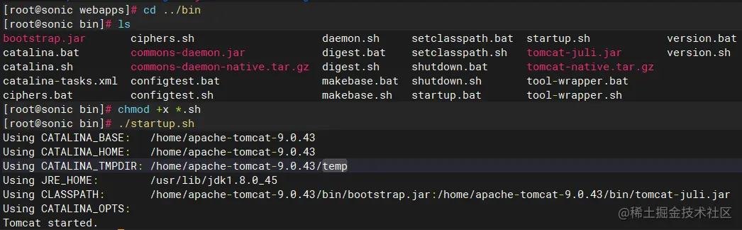 在启动前需要先赋予sh文件执行权限,然后执行启动: