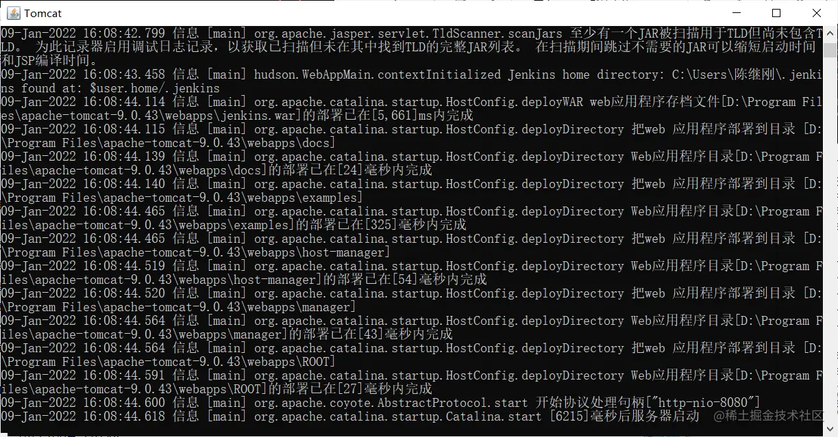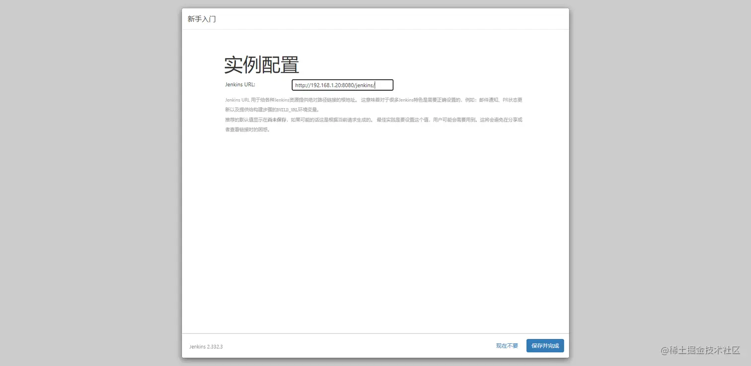 如果不修改Tomcat配置的话,默认端口就是8080,http://ip:8080/jenkins/