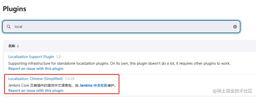 Jenkins默认语言为英文,对于不太熟悉或英文不好的人来说,看起来会有些吃力,我们可以通过汉化插件对其进行汉化。在系统管理-插件管理中搜索安装Localization: Chinese (Simplified)插件: