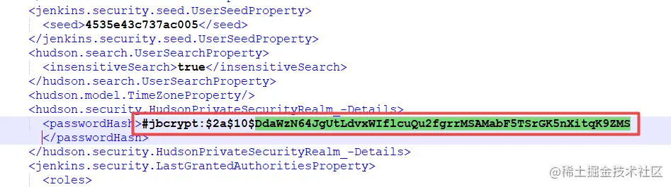① 修改Jenkins主目录下的config.xml文件,将passwordHash那一行改为#jbcrypt:10$DdaWzN64JgUtLdvxWIflcuQu2fgrrMSAMabF5TSrGK5nXitqK9ZMS