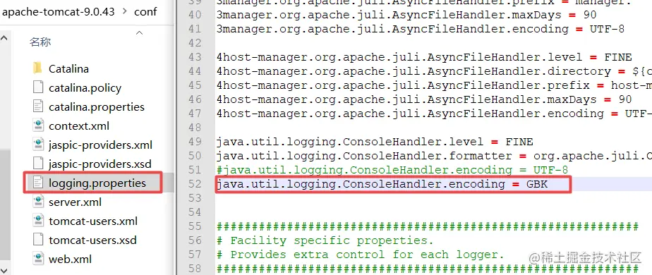 在Tomcat安装目录的conf目录中,将logging.properties文件中“java.util.logging.ConsoleHandler.encoding = UTF-8”改为“java.util.logging.ConsoleHandler.encoding = GBK”(Windows控制台默认编码方式为GBK,Linux为UTF-8,所以如果是Windows系统,则需要改成与Windows编码方式一致)