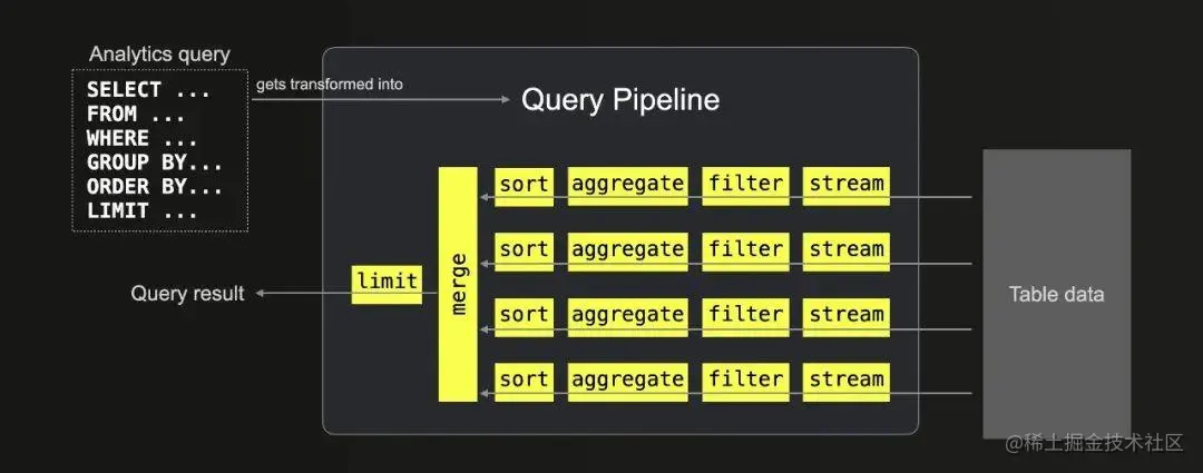 对于所有查询(包括连接),查询管道确保以高度并行和可扩展的方式处理表数据。