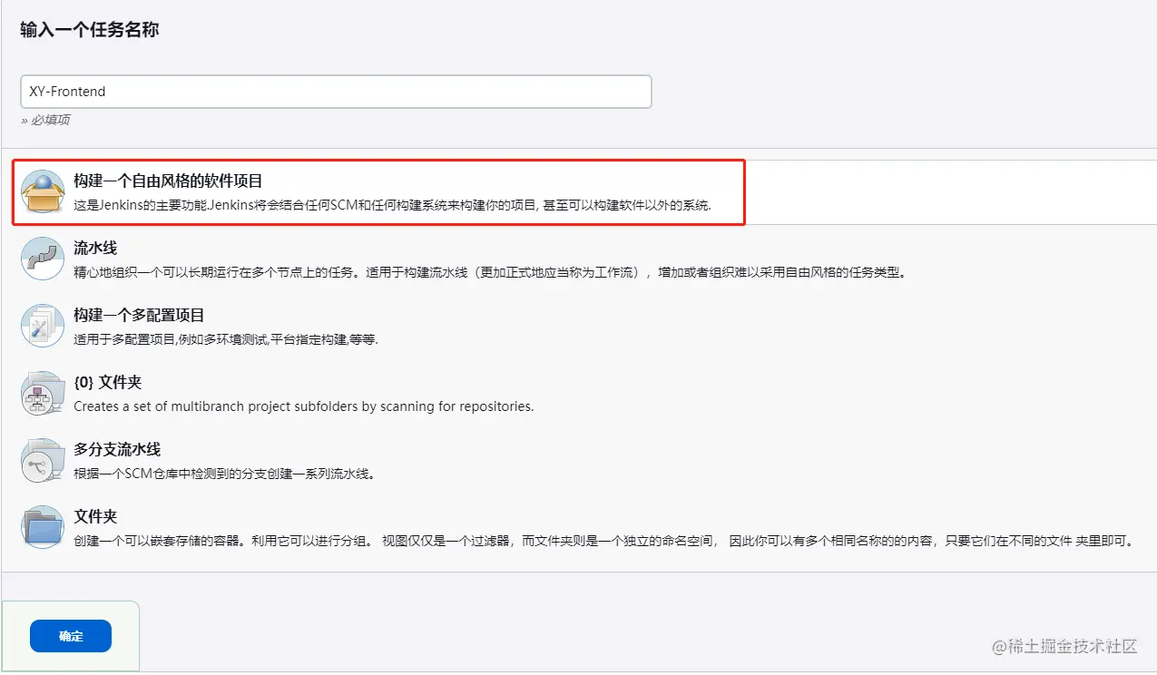 此处选择“构建一个自由风格的软件项目”