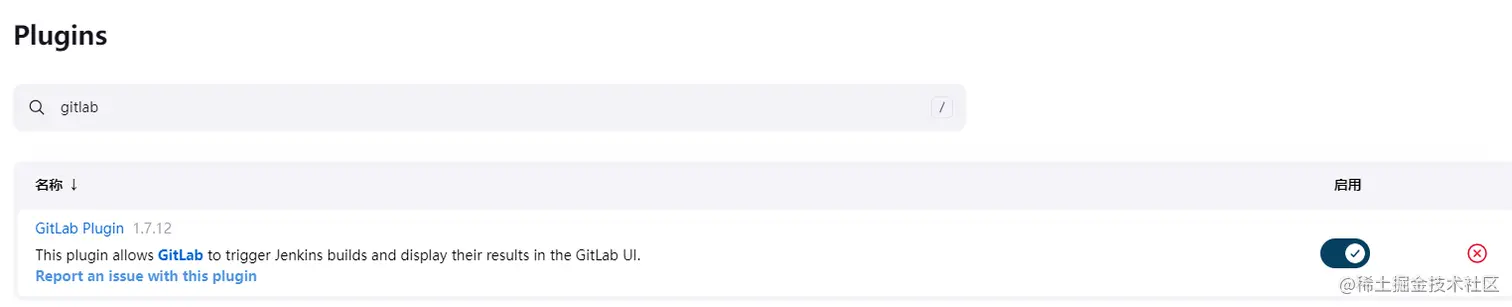 升级JavaBeans Activation Framwork插件、重启Jenkins后,Gitlab插件处于可用状态: