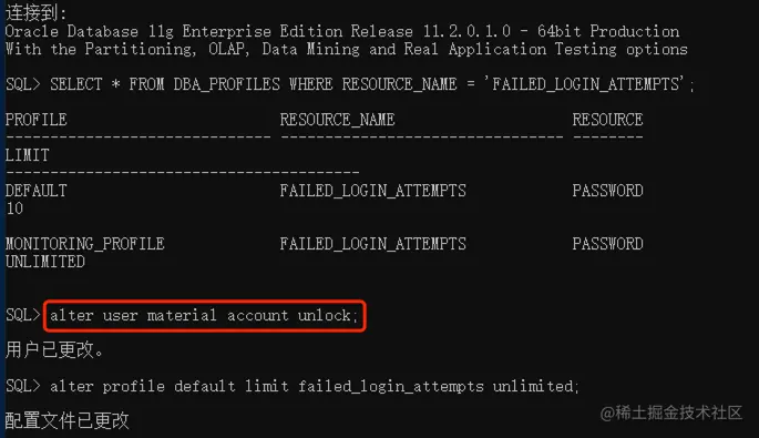 alter profile default limit failed_login_attempts unlimited;//无限制