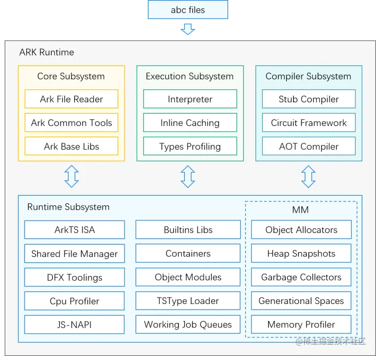 ArkCompiler运行时包含了执行引擎、内存管理器、语言内建标准库等部件,直接运行字节码文件,实现对应语言规范的语义逻辑。