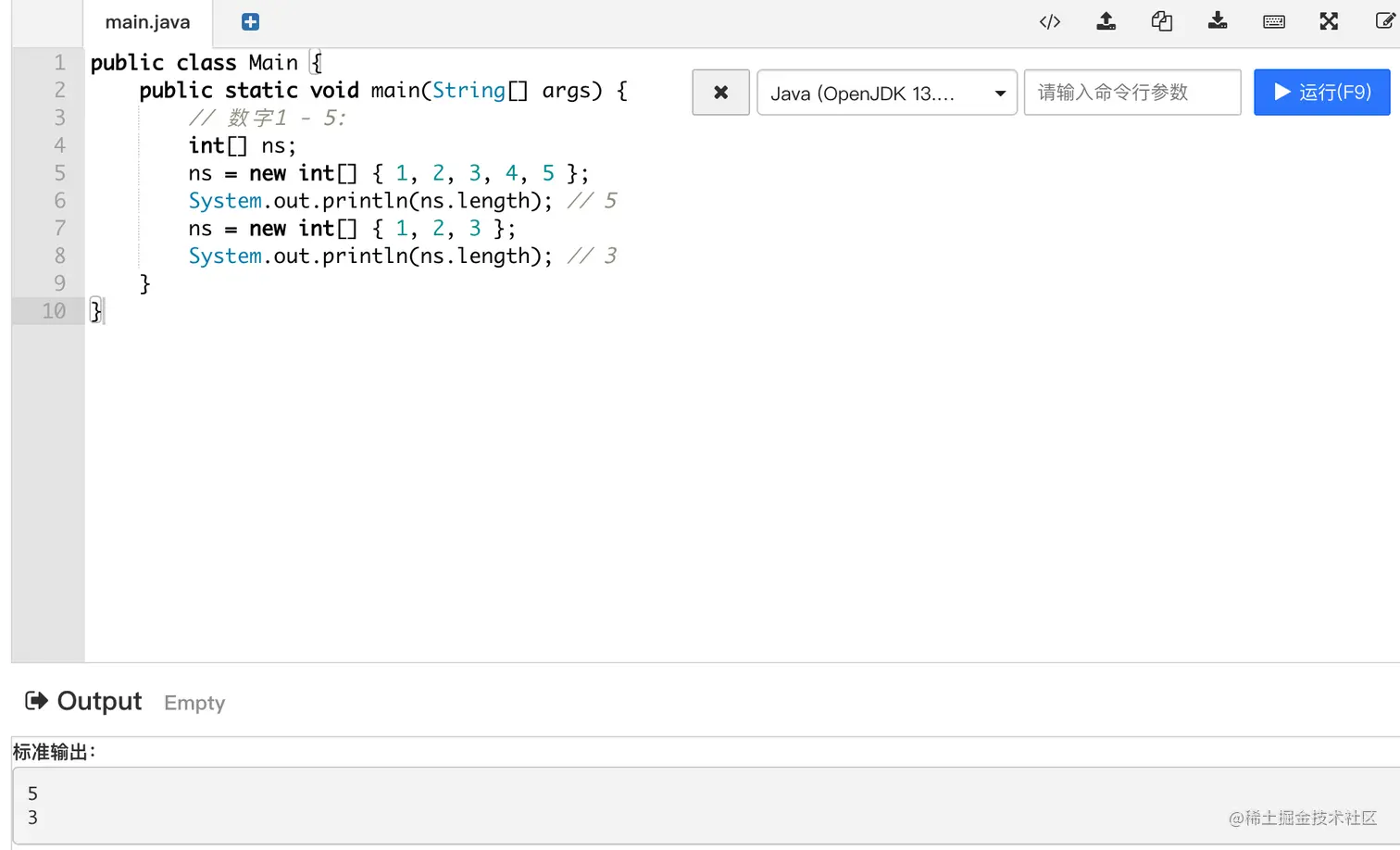 System.out.println(ns.length);