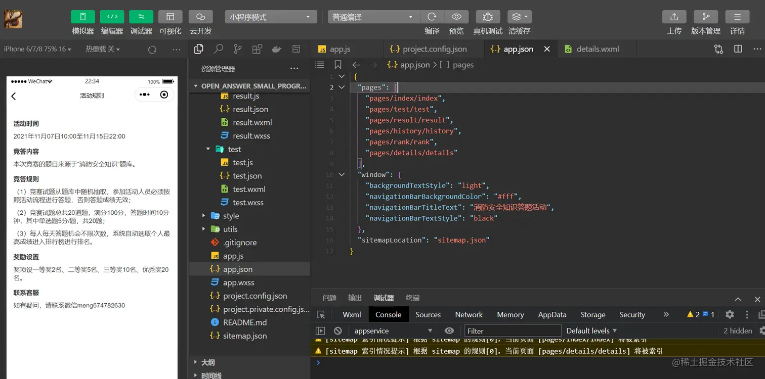 答题活动小程序v3.0,基于微信原生小程序+云开发实现。主要包含六大功能模块页面,首页、答题页、结果页、活动规则页、答题记录页、排行榜页。 适用于交通安全答题、 消防安全知识宣传、 安全生产知识学习、网络与信息安全知识竞赛、五四青年节答题活动、学法普法教育、有奖答题等应用场景。