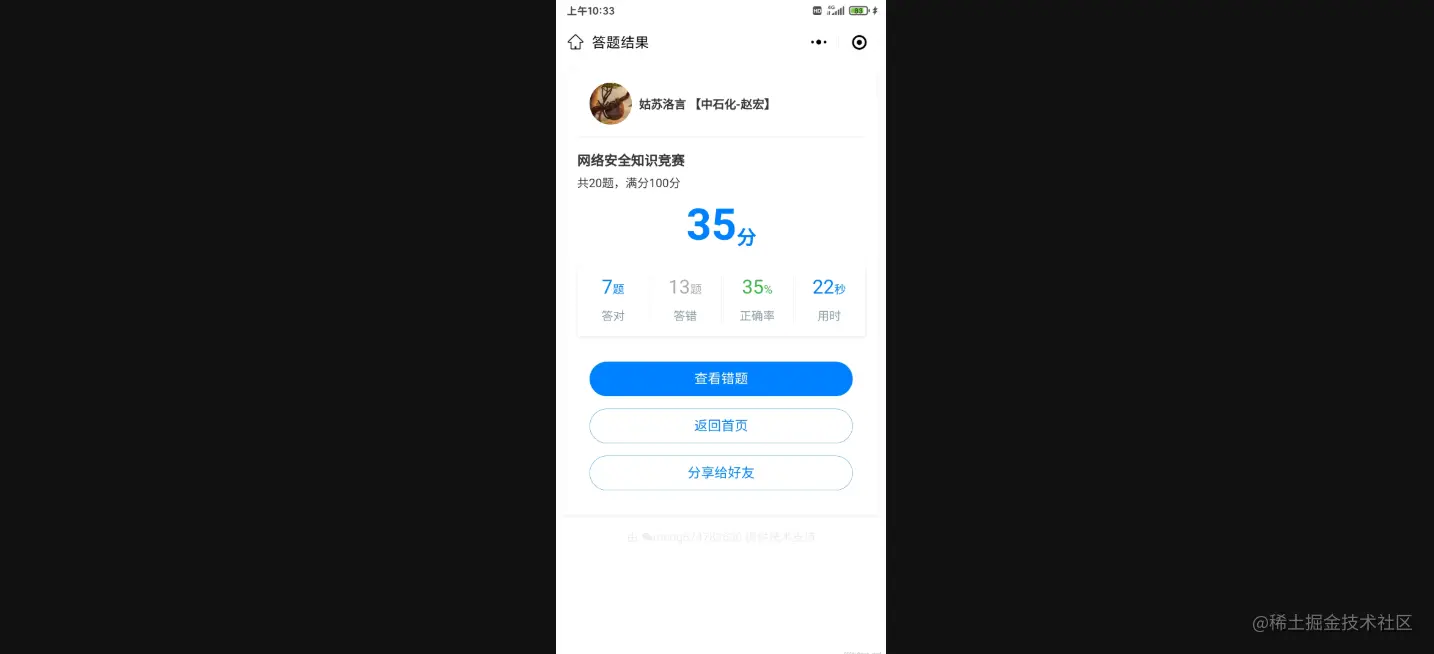 - 实现转发分享答题成绩功能