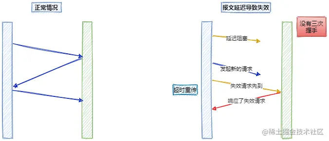- 防止已失效的连接请求报文段突然又传送到了服务端,因而产生错误。