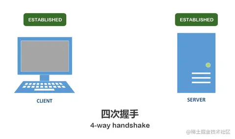 你可以看到,每个方向都需要一个 FIN 和一个 ACK,因此通常被称为四次挥手。